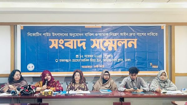 তামাক নিয়ন্ত্রণ আইনের সংশোধনী পাস ও নিকোটিন পাউচ উৎপাদনের অনুমোদন বাতিলের দাবি নারী মৈত্রীর
