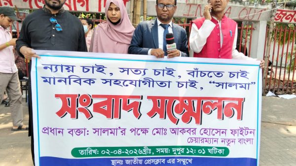 ন্যায় বিচার নিশ্চিতে মানবিক সহযোগিতা চেয়ে জাতীয় প্রেসক্লাবের সামনে কালিহাতী উপজেলার সালমা বেগমের সংবাদ সম্মেলন