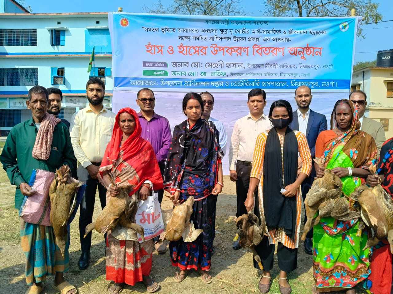 নওগাঁর নিয়ামতপুরে উপজেলার ক্ষুদ্র-নৃগোষ্ঠী সম্প্রদায়ের মাঝে বাড়ন্ত হাঁস বিতরণ করা হয়েছে।
