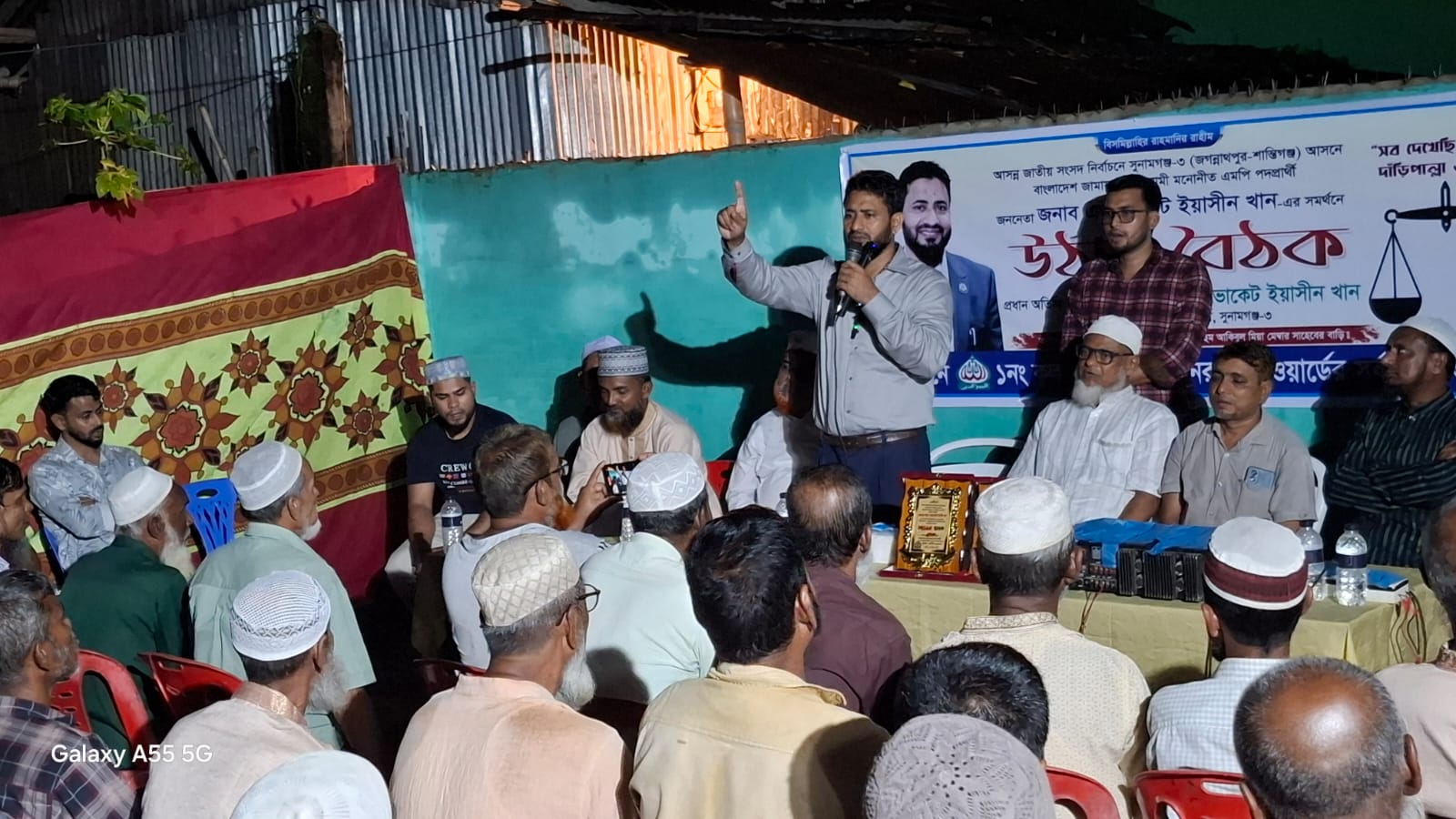 অনুষ্ঠানে বক্তারা বলেন, সুনামগঞ্জের ( জগন্নাথপুর-শান্তিগঞ্জ) সংসদীয় আসনে জামায়াতে ইসলামী মনোনীত দাঁড়িপাল্লার প্রার্থী এডভোকেট ইয়াসীন খান একজন নিবেদিত সমাজকর্মী। আগামী জাতীয় সংসদ নির্বাচনে দাঁড়িপাল্লা মার্কায় ভোট দিয়ে তাকে বিজয়ী করতে হবে।
