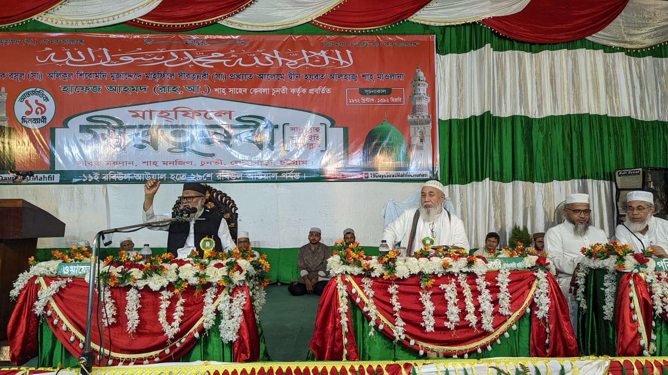 ১৯সেপ্টেম্বর ২০২৫ শুক্রবার যুগশ্রেষ্ঠ আলেম হযরত মাওলানা হাফেজ আহমদ প্রকাশ শাহ্ সাহেব কেবলা চুনতী কর্তৃক প্রবর্তিত ১৯ দিনব্যাপী ৫৫তম আন্তর্জাতিক মাহফিলে সীরতুন্নবী (সা.) চট্টগ্রাম লোহাগাড়া চুনতীস্থ শাহ্ মনজিল সীরত ময়দানে উদ্বোধনী (১৬তম) দিবস অনুষ্ঠিত হয়। মাহফিলে দুই অধিবেশনে কুতুব শরীফ দরবারের শাহজাদা আলহাজ্ব মাওলানা মুনিরুল মান্নান কুতুবী ও কক্সবাজার পেকুয়া বারবাকিয়া ইউনিয়নের চেয়ারম্যান আলহাজ্ব মাওলানা বদিউল আলম জিহাদীর সভাপতিত্বে বিশেষ মেহমান হিসেবে উপস্থিত ছিলেন ঢাকা বিশ্ববিদ্যালয়ের উপাচার্য নিয়াজ আহমেদ খান ও ফুলকলির ব্যবস্থাপনা পরিচালক আলহাজ্ব শাহ আলম, চট্টগ্রাম বিল্ডার্সের চেয়ারম্যান আলহাজ্ব নাসির উদ্দিন।চুনতি হাকিমিয়া অনার্স মাস্টার্স মাদ্রাসার অধ্যক্ষ মাওলানা ফারুক হোসাইন ও সাবেক অধ্যক্ষ হাফিজুল হক নিজামী এর যৌথ সঞ্চালনায় গণপ্রজাতন্ত্রী বাংলাদেশ সরকারের ধর্ম উপদেষ্টা ড.মাওলানা আ.ফ.ম. খালিদ হোসেন , মাওলানা মাহমুদুর রহমান দেলোয়ার সিলেট, শাহজালাল বিজ্ঞান ও প্রযুক্তি বিশ্ববিদ্যালয় অধ্যাপক ড.মাওলানা ফয়জুল হক, হাফেজ মাওলানা আব্দুল হামিদ, মাওলানা জালাল উদ্দিন, মাওলানা আব্দুল মান্নান শামসী। মোতাওয়াল্লী কমিটির সভাপতি আলহাজ্ব মাওলানা মুহাম্মদ হাফিজুল ইসলাম আবুল কালাম আজাদ, সাংগঠনিক সম্পাদক শাহজাদা মাওলানা আব্দুল মালেক মুহাম্মদ ইবনে দিনার নাজাত, মাওলানা কাজী নাসির উদ্দিন, আলহাজ্ব ইদ্রিস মিনহাজ, আলহাজ্ব মোহাম্মদ ইউনুস, ইসলামীক ফাউন্ডেশন চট্টগ্রামের পরিচালক সরকার সারোয়ার আলম। বক্তরা বক্তব্য বলেন রাসূল (সা.)-এর জীবনাদর্শ অনুসরণ ও অনুকরণের মাধ্যমে বিশ্বে শান্তি প্রতিষ্ঠা করা সম্ভব, কারণ তাঁর আদর্শ মানবতাবিরোধী বিবাদ, হিংসা ও সংঘাত দূর করে মানুষের মধ্যে সম্প্রীতি, ন্যায়বিচার ও পারস্পরিক শ্রদ্ধা ও ভালোবাসা গড়ে তুলতে সাহায্য করে। পবিত্র কুরআনে বলা হয়েছে, "তোমাদের জন্য রাসূল (সা.) এর জীবনেই রয়েছে সর্বোত্তম আদর্শ", যা এই বিশ্বাসকে সমর্থন করে। তাঁর জীবনাদর্শকে মানবজাতির জন্য একটি পূর্ণাঙ্গ ও পরিপূর্ণ জীবনব্যবস্থা হিসেবে উপস্থাপন করা হয়েছে, যা আজকের অশান্তিময় পৃথিবীতে শান্তি প্রতিষ্ঠার একমাত্র বিকল্প প্রমুখ।
