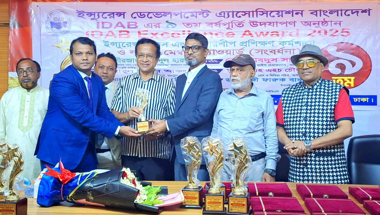 শনিবার (২০ সেপ্টেম্বর) বিকালে রাজধানীর পল্টন ইআরএফ হল রুমে ইন্স্যুরেন্স ডেভেলপমেন্ট এ্যাসোসিয়েশন বাংলাদেশ (আইডিএবি) এর ৯ তম বর্ষপূর্তি উদযাপন উপলক্ষ্যে অনুষ্ঠিত এক্সিলেন্স অ্যাওয়ার্ড ২০২৫, লাইফ মেম্বার সংবর্ধনা ও প্রশিক্ষণ কর্মশালা অনুষ্ঠান থেকে এই অ্যাওয়ার্ড পান তিনি।