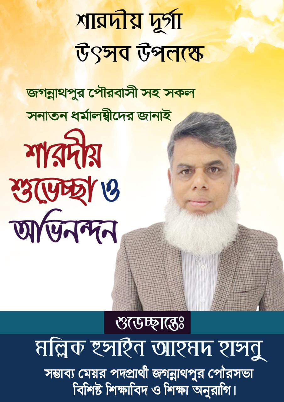 শারদীয়া দুর্গাপূজার শুভেচ্ছা জানালেন জগন্নাথপুর পৌরসভার সম্ভাব্য মেয়র প্রার্থী- মল্লিক হুসাইন আহমদ হাসনু