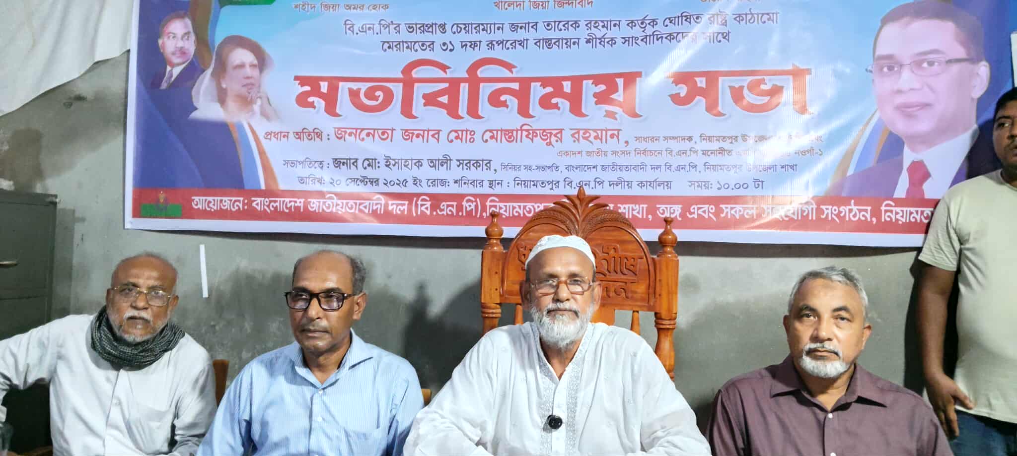 বিএনপির ভারপ্রাপ্ত চেয়ারম্যান তারেক রহমান কর্তৃক ঘোষিত রাষ্ট্র কাঠামো মেরামতের ৩১ দফা বাস্তবায়ন হলেই রাষ্ট্র সংস্কার ও মেরামত সম্ভব বলে মন্তব্য করেছেন একাদশ জাতীয় সংসদ নির্বাচনে নওগাঁ-১ আসনের বিএনপির প্রার্থী ও উপজেলা বিএনপির সাধারণ সম্পাদক মোস্তাফিজুর রহমান।
