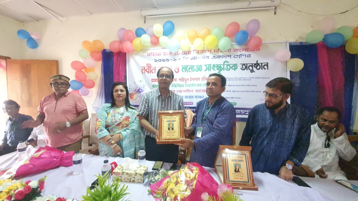 নরসিংদীর রায়পুরায় রহিমা হক চেতনা বিকাশ মহিলা কলেজের ২০২৫-২৬ শিক্ষাবর্ষে একাদশ শ্রেনীর শিক্ষার্থীদের নবীণ বরন ও সাংস্কৃতিক অনুষ্ঠান অনুষ্ঠিত হয়ছে। কোরআন তিলাওয়াত ও জাতীয় সংগীত পরিবেশন এবং নতুন শিক্ষার্থীদের ফুল দিয়ে বরন করে নেয়ার মাধ্যমে এই অনুষ্ঠান শুরু হয়।