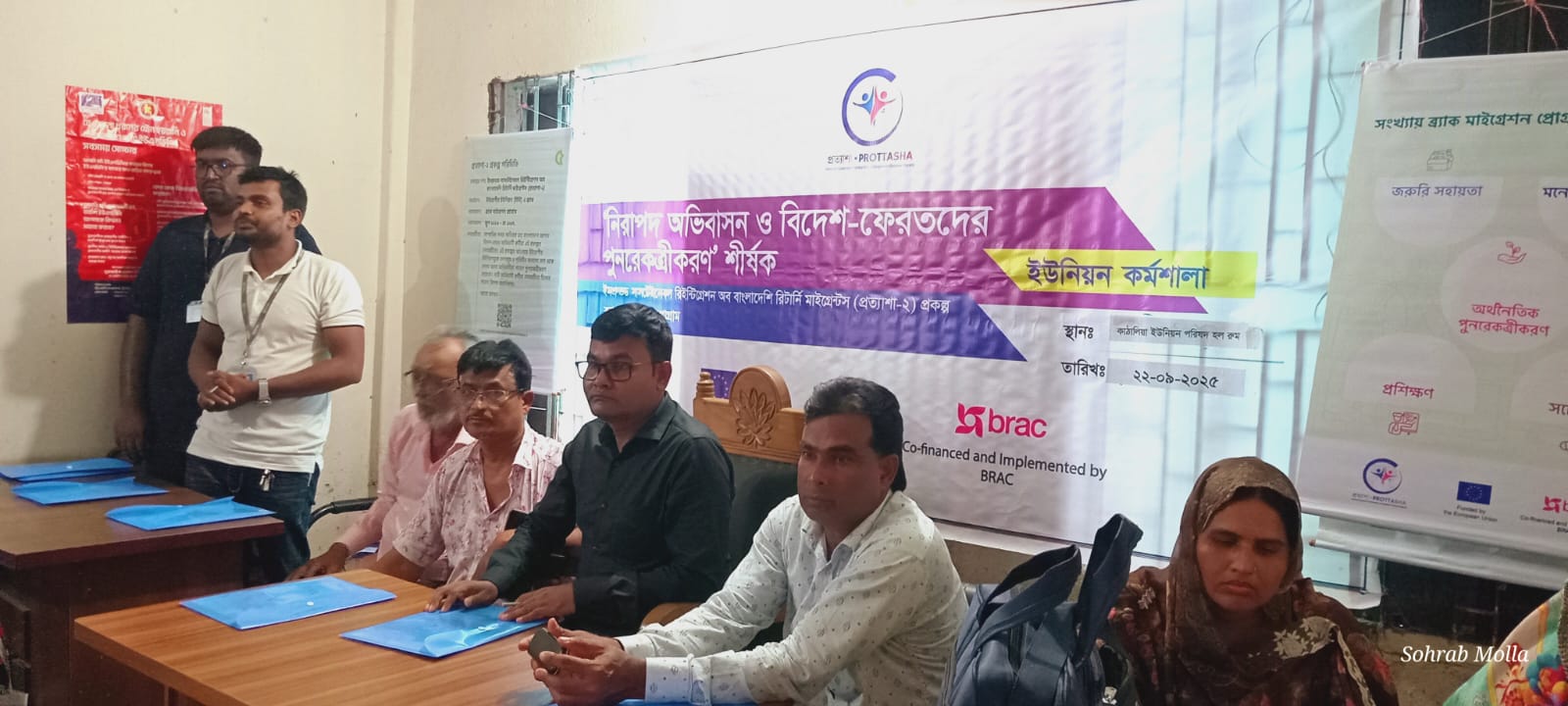 নরসিংদী সদরে ব্র্যাকের মাইগ্রেশন প্রোগ্রামের প্রত্যাশা-২ প্রকল্পের আওতায় ‘নিরাপদ অভিবাসন ও বিদেশ ফেরত অভিবাসীদের পুনরেকত্রীকরণ’ শীর্ষক ইউনিয়ন কর্মশালা অনুষ্ঠিত হয়েছে। সোমবার (২২ সেপ্টেম্বর ২০২৫ ) সকাল ১১টায় উপজেলার কাঠালিয়া ইউনিয়ন পরিষদের হলরুমে ইউরোপীয় ইউনিয়ন ও সর্ববৃহৎ বেসরকারি উন্নয়ন সংস্থা ব্র্যাক-এর যৌথ অর্থায়নে এবং ব্র্যাক মাইগ্রেশন প্রোগ্রাম এর বাস্তবায়নে “ইম্প্রুভড সাসটেইনেবল রিইন্টিগ্রেশন অব বাংলাদেশি রির্টানী মাইগ্রেন্টস (প্রত্যাশা ২) প্রকল্পের আওতায় এ কর্মশালা অনুষ্ঠিত হয়।