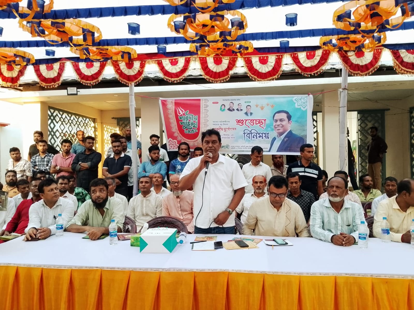 উপজেলা পূজা উদযাপন পরিষদের সভাপতি বাবু বিপ্লব চক্রবর্তীর সভাপতিত্বে ও উপজেলা হিন্দু মহাজোটের সাধারণ সম্পাদক রাজন রায়ের সঞ্চালনায় এতে উপস্থিত ছিলেন শিবপুর উপজেলা বিএনপির সাধারণ সম্পাদক বীর মুক্তিযোদ্ধা আবু ছালেক রিকাবদার, শিবপুর পৌরসভা বিএনপির সভাপতি এডভোকেট মাহমুদুল হাসান বাবুল,সাধারণ সম্পাদক জাকির হোসেন,বাংলাদেশ জাতীয় হিন্দু মহাজোটের সাংগঠনিক সম্পাদক কিশোর কুমার বর্মণ, উপজেলা পূজা উদযাপন পরিষদের সাধারণ সম্পাদক অজয় কৃষ্ণ গোস্বামী, শিবপুর উপজেলা হিন্দু মহাজোটের সভাপতি অসীম কুমার ঘোষ, উপজেলা পূজা উদযাপন ফ্রন্টের আহবায়ক লিটন চন্দ্র বর্মণ, সদস্য সচিব উজ্জ্বল চন্দ্র বর্মণসহ বিভিন্ন রাজনৈতিক দলের নেতৃবৃন্দ ও সকল পূজা মন্ডপের সভাপতি সাধারণ সম্পাদকসহ ভক্তবৃন্দরা উপস্থিত ছিলেন।