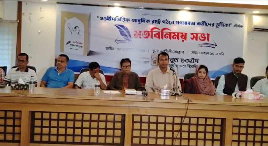 হেযবুত তওহীদের উদ্যোগে "তওহীদভিত্তিক আধুনিক রাষ্ট্র গঠনে গণমাধ্যম কর্মীদের ভূমিকা" শীর্ষক একটি মতবিনিময় সভা নরসিংদীতে অনুষ্ঠিত হয়েছে। সভায় জেলার প্রিন্ট ও ইলেকট্রনিক মিডিয়ার সাংবাদিকবৃন্দসহ সুশীল সমাজের বিভিন্ন প্রতিনিধি অংশগ্রহণ করেন।