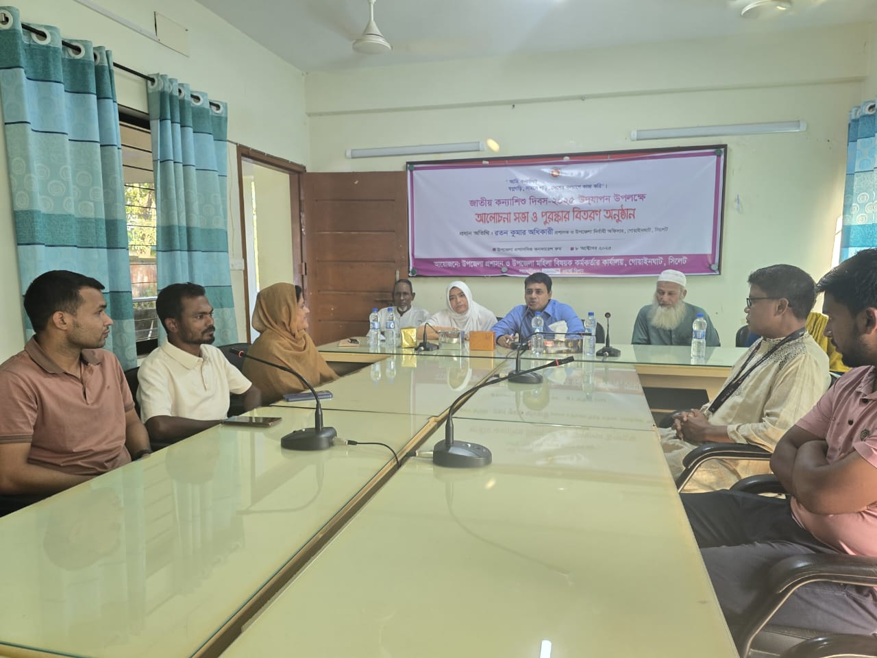 সহযেগিতায় দিবসটি উপলক্ষে আলোচনাসভাও পুরষ্কার বিতরণ অনুষ্ঠিত হয়। মহিলা বিষয়ক কর্মকর্তা তাসলিমার সভাপতিত্বে শামীম আহমদের সঞ্চালনায় সভায় প্রধান অতিথির বক্তব্য রাখেন ইউএনও রতন কুমার অধিকারী। বিশেষ অতিথির বক্তব্য রাখেন যুব উন্নয়ন কর্মকর্তা ফয়জুলহক,ওয়ার্ল্ড ভিশন গোয়াইনঘাট এপির ম্যানেজার শেলী তেরেসা কস্তা, বিশেষ অতিথি হিসাবে উপস্হিতি ছিলেন,উপজেলা দুপ্রক সচিব সাংবাদিক আব্দুল মালিক, প্রেসক্লাবের সাঃ সম্পাদক করিম মহমুদ লিমন, রিপোর্টার্স ক্লাবের সাঃ সম্পাদক ইমরান আহমদ, ওয়াল্ডভিষনের শিশু সুরক্ষা কর্মকর্তা এ্যান্তনীয়। সভা শেষে দিবসটি উপলক্ষে আয়োজিত রচনা প্রতিযোগিতায় বিজয়ীদের মধ্যে পুরষ্কার বিতরন করেন অতিথিবৃন্দ।