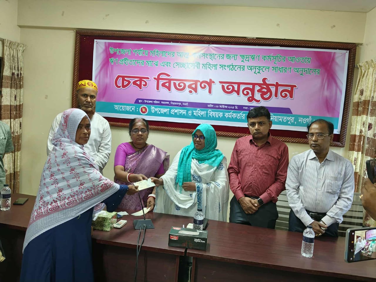 আলোচনা শেষে উপজেলা পর্যায়ে মহিলাদের মাঝে ক্ষুদ্রঋণ কর্মসূচির আওতায় ঋণগ্রহীতাদের মাঝে এবং সেচ্ছাসেবী মহিলা সংগঠনের অনুকুলে সাধারণ অনুদানের চেক বিতরণ করেন উপজেলা নির্বাহী কর্মকর্তা মোছাঃ মুর্শিদা খাতুন।