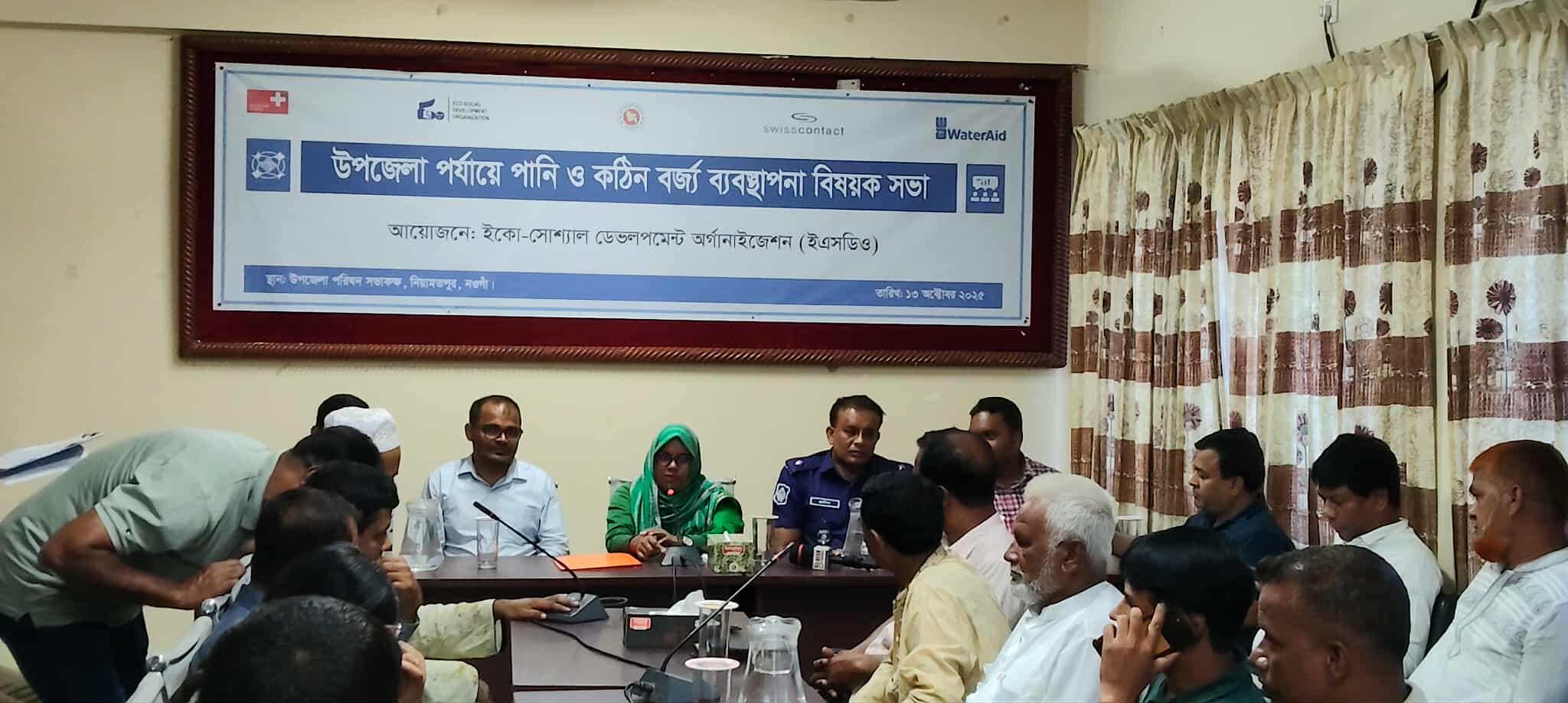 নওগাঁর নিয়ামতপুরে উপজেলা পর্যায়ে পানি ও কঠিন বর্জ্য ব্যবস্থাপনা বিষয়ক সভা অনুষ্ঠিত হয়েছে।