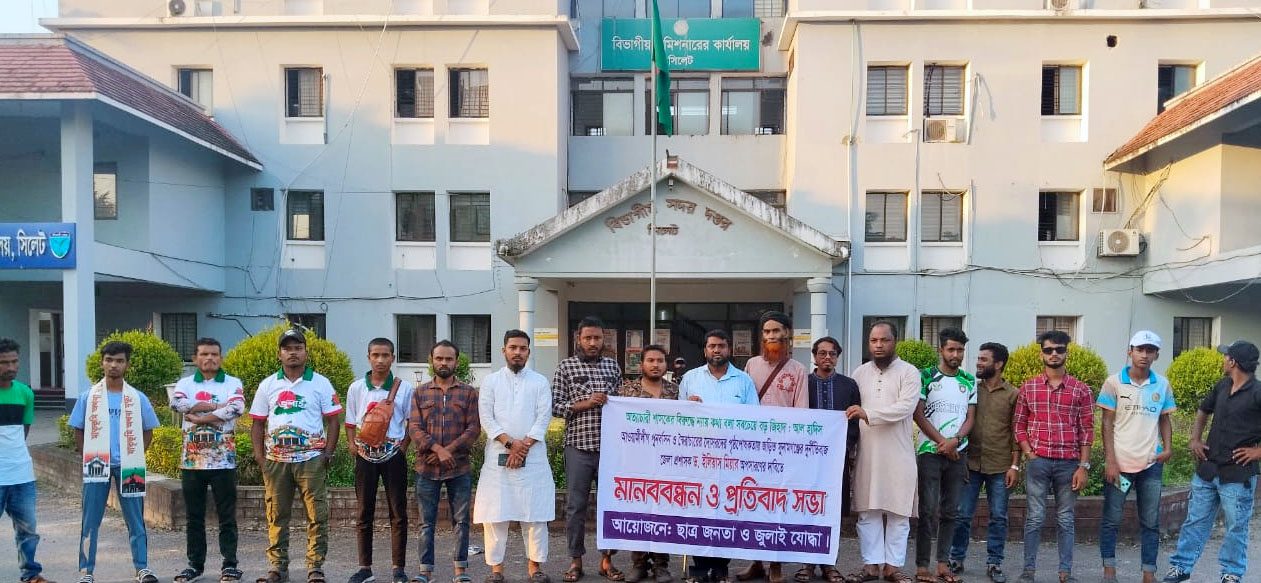 মানবন্ধনে বক্তারা বলেন,আওয়ামীলীগ পূনর্বাসণ ও স্বৈরাচারের দোসরদের পৃষ্ঠপোষকতায় জড়িত সুনামগঞ্জের দুর্নীতিবাজ জেলা প্রশাসক ড. মোহাম্মদ ইলিয়াস মিয়া এবং অতিরিক্ত জেলা প্রশাসক (রাজস্ব) ও এডিএম মোহাম্মদ রেজাউল করিমকে অপসারনের দাবীতে গত ৪ঠা অক্টোবর শনিবার বিকেল ৩টায় সুনামগঞ্জ ট্রাফিক পয়েন্টে এক বিশাল মানববন্ধন ও প্রতিবাদ সভায় আমরা সুনামগঞ্জের ছাত্রজনতা প্রতিবাদ সভা করি। আমাদের আন্দোলনের ফলে দুর্নীতিবাজ এডিএম মোহাম্মদ রেজাউল করিমকে সুনামগঞ্জ থেকে প্রত্যাহার করা হলেও দুর্নীতির মূলহোতা জেলা প্রশাসক ড.মোহাম্মদ ইলিয়াস মিয়ার বিরুদ্ধে এখন পর্যন্ত কোন পদক্ষেপ গ্রহন করা হয়নি।