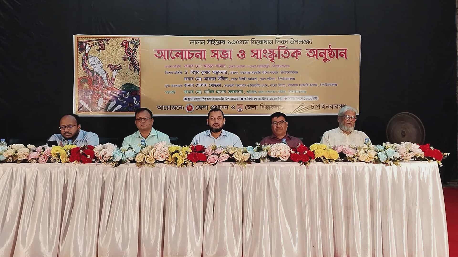 চাঁপাইনবাবগঞ্জে উদযাপিত হয়েছে লালন সাঁইয়ের ১৩৫তম তিরাধান দিবস। “মানুষ ভজল সোনার মানুষ হবি” ফকির লালন সাঁইয়ের এই কালজয়ী মানবতাবাদী বাণীকে ধারণ করে দিবসটি উপলক্ষে শুক্রবার (১৭ অক্টোবর) সকাল ১০টায় জেলা শিল্পকলা একাডমী মিলনায়তনে জেলা প্রশাসন ও জেলা শিল্পকলা একাডমীর যৌথ উদ্যাগে আয়োজন করা হয় আলোচনা সভা ও সাংস্কৃতিক অনুষ্ঠান। এতে প্রধান অতিথি ছিলেন জেলা প্রশাসক (যুগ্ম সচিব) মো. আব্দুস সামাদ। বিশেষ অতিথি ছিলেন নবাবগঞ্জ সরকারি মহিলা কলজর অধ্যক্ষ ড. বিপ্লব কুমার মজুমদার এবং জেলা পরিষদের প্রধান নির্বাহী কর্মকর্তা মো. আফাজ উদ্দিন, চাঁপাইনবাবগঞ্জ প্রেসক্লাবের সভাপতি সিনিয়র সাংবাদিক গোলাম মাস্তফা মটু। অনুষ্ঠানে সভাপতিত্ব করেন অতিরিক্ত জেলা প্রশাসক (সার্বিক) মো. নাকিব হাসান তরফদার। বক্তারা, লালন সাঁইয়ের জীবনদর্শন, মানবপ্রেম ও সাম্যর চেতনা তুলে ধরেন। তাঁরা বলেন, লালনের বাণী শুধু সংগীত নয়, এটি এক গভীর জীবনদর্শন, যা মানুষ মানুষ বিভেদ ভুলে ঐক্যর বার্তা দেয়। তাঁর ভাবধারা আজও সমাজ সম্প্রীতি ও মানবতার আলো ছড়াই। জেলা প্রশাসক মো. আব্দুস সামাদ বলেন, লালন সাঁইয়ের শিক্ষা আমাদর শিখিয়েছে ধর্ম, জাতি বা বর্ণর ঊর্ধ মানুষই সর্বাচ্চ। তাঁর দর্শন আজও প্রাসঙ্গিক। আমরা যদি লালনের মানবতার বাণী জীবন ধারণ করত পারি, তবে সমাজ থেকে ঘৃণা, হিংসা ও বৈষম্য দূর হবে। লালনের দর্শন অনুপ্রাণিত এই আয়াজনটি চাঁপাইনবাবগঞ্জ মানবতা ও ঐক্যের এক নতুন সুর ছড়িয় দিবে। আলাচনা শেষে শিল্পীদর অংশগ্রহণে পরিবশিত হয় সাংস্কৃতিক অনুষ্ঠান। শিল্পীরা পরিবশন করেন লালন গীতি, বাউল সুর ও মানবতার গান। দর্শক-শ্রোতারা লালনের মহত্বের দর্শনে মুগ্ধ হয় গানগুলার সাথে গলা মেলান। এসময় উপস্থিত ছিলেন সংস্কৃতি কর্মী, শিক্ষক, ছাত্রছাত্রী, সাহিত্যপ্রেমী ও বিভিন শ্রেণি-পেশার মানুষ।