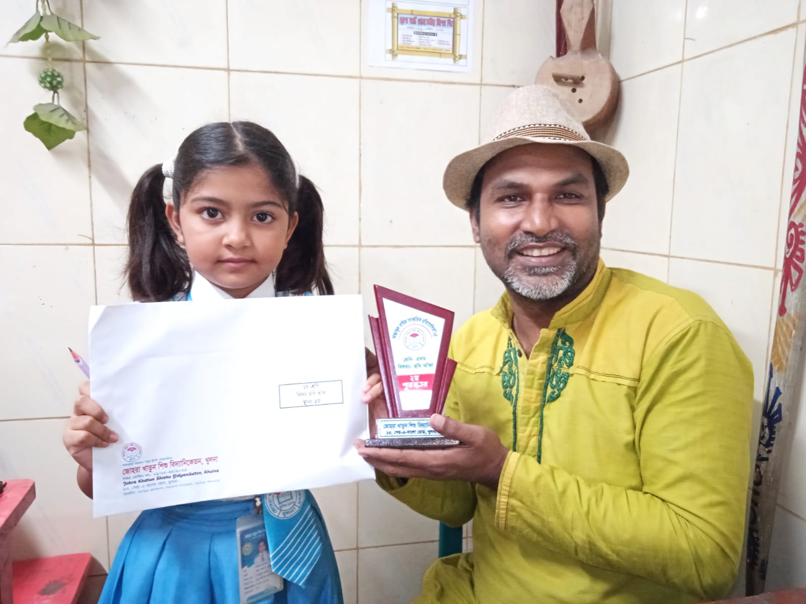 খুলনা আর্ট একাডেমির শ্রেষ্ঠ শিশু শিল্পী যাহরুনের ৬৩তম পুরস্কার অর্জন