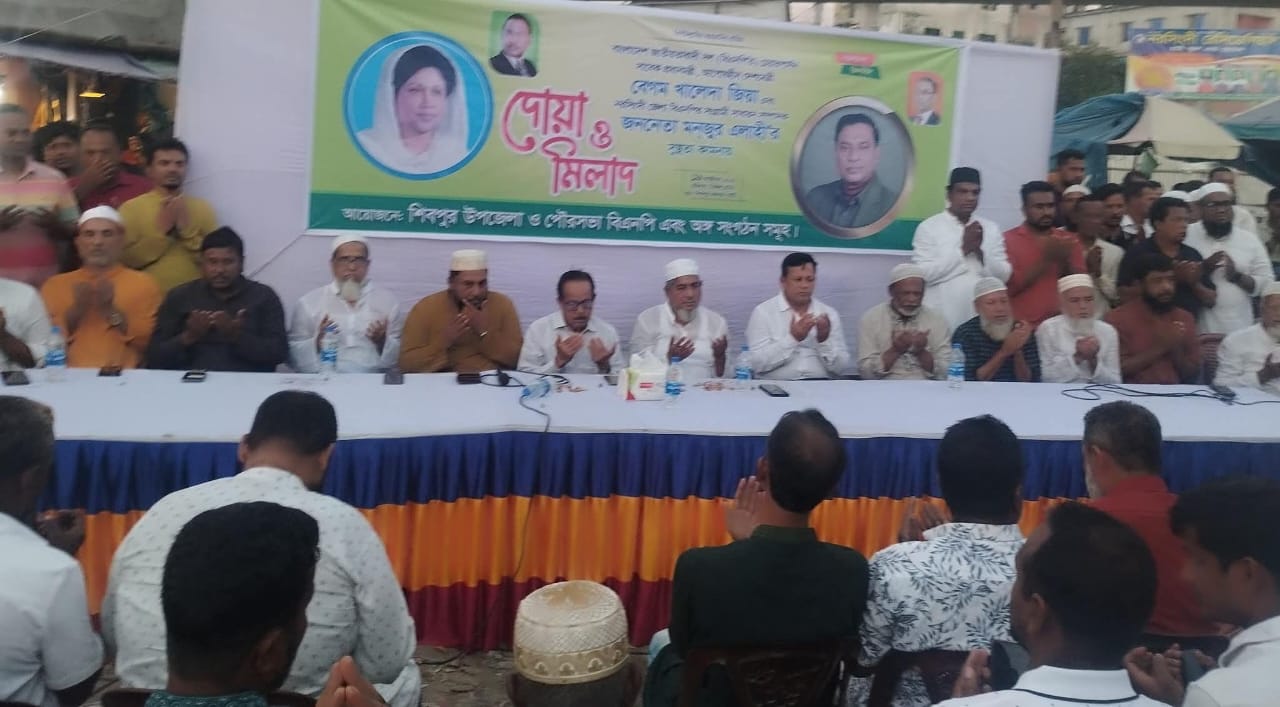 নরসিংদীর শিবপুরে বিএনপির চেয়ারপার্সন ও ৩ বারের সাবেক প্রধানমন্ত্রী বেগম খালেদা জিয়া ও নরসিংদী জেলা বিএনপির সাধারণ সম্পাদক আলহাজ্ব মনজুর এলাহীর রোগমুক্তি কামনায় মিলাদ ও দোয়া মাহফিল অনুষ্ঠিত হয়েছে। রবিবার (১৯ অক্টোবর) বাদ আছর নরসিংদীর শিবপুর উপজেলা ও পৌরসভা বিএনপির আয়োজনে কলেজ গেইট বাসস্ট্যান্ডে এই মিলাদ ও দোয়া মাহফিল অনুষ্ঠিত হয়। শিবপুর