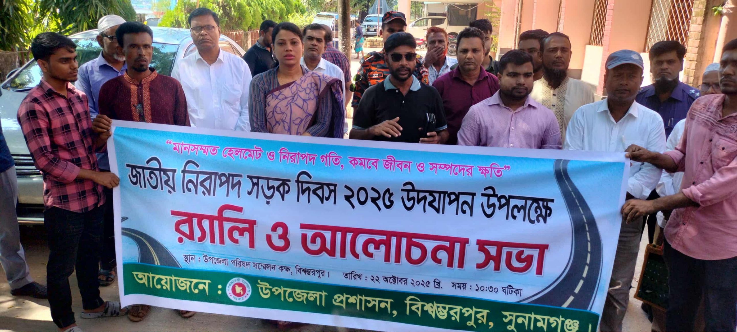 সুনামগঞ্জ জেলার বিশ্বম্ভরপুরে জাতীয় নিরাপদ সড়ক দিবস ২০২৫ উদযাপন উপলক্ষে এক বর্ণাঢ্য র্যালি ও আলোচনা সভা অনুষ্ঠিত হয়েছে।