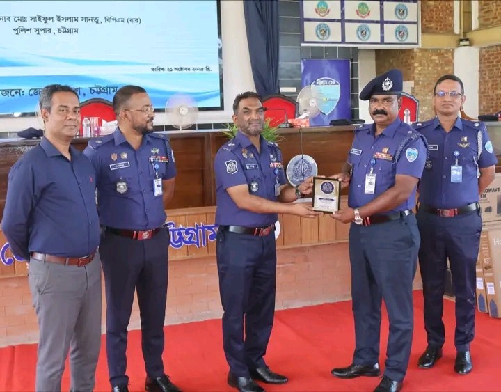ষষ্ঠবারের মতো সম্মাননা গ্রহণ করছেন লোহাগাড়া থানার ট্রাফিক ইনচার্জ টি আই মোঃ হাসানুজ্জামান। চট্টগ্রাম জেলা পুলিশ কার্যালয় থেকে চট্টগ্রাম জেলা পুলিশ সুপার সাইফুল ইসলাম সানতুর হাত থেকে এ সম্মাননা গ্রহণ করেন। এই বিষয়ে বিস্তারিত জানতে গিয়ে জানাযায় চট্টগ্রামের লোহাগাড়া থানার সদর ষ্টেশন কে পরিস্কার পরিচ্ছন্ন ও দূর্ঘটনা মুক্ত করতে রাত দিন একজন সুদক্ষ চৌকষ সাহসী সার্জেন্ট ও তিন কনেষ্টেবল নিয়ে চট্টগ্রাম জেলার সুদক্ষ চৌকষ ক্যাডেট পুলিশ সুপার সাইফুল ইসলাম সানতুর দিকনির্দেশনা মোতাবেক কাজ করে যাচ্ছেন হাসানুজ্জামান। টি আই হাসানুজ্জামান সম্পর্কে স্থানীয় ব্যবসায়ী, গাড়ি চালকরা বলেছেন হাসানুজ্জামান একজন মিষ্টিবাসি তিনি লোহাগাড়া থানার সর্বস্তরের মানুষ কে ট্রাফিক আইন শৃঙ্খলা সম্পর্কে সচেতন করতে কঠোর পরিশ্রম করে যাচ্ছেন। হাসানুজ্জামান কে সকল বিষয়ে সহযোগিতা করে যাচ্ছেন লোহাগাড়া থানার সুদক্ষ চৌকষ সাহসী পুলিশ অফিসার ইনচার্জ ওসি আরিফুল ইসলাম আইনগত বিভিন্ন কর্মকাণ্ড পর্যালোচনা করে দেখা যায় ওসি মোঃ আরিফ এবং টি আই হাসানুজ্জামান লোহাগাড়া থানার নয় ইউনিয়নের মানুষের অন্তর জয় করে নিয়েছেন। চট্টগ্রাম জেলার লোহাগাড়া থানার টি আই হাসানুজ্জামান এইবার সহ ছয়বার ভাল কাজের সিকৃতি হিসেবে চট্টগ্রাম জেলার পুলিশ সুপার সাইফুল ইসলাম সানতুর হাত থেকে ক্রেস্ট গ্রহণ করেছেন।
