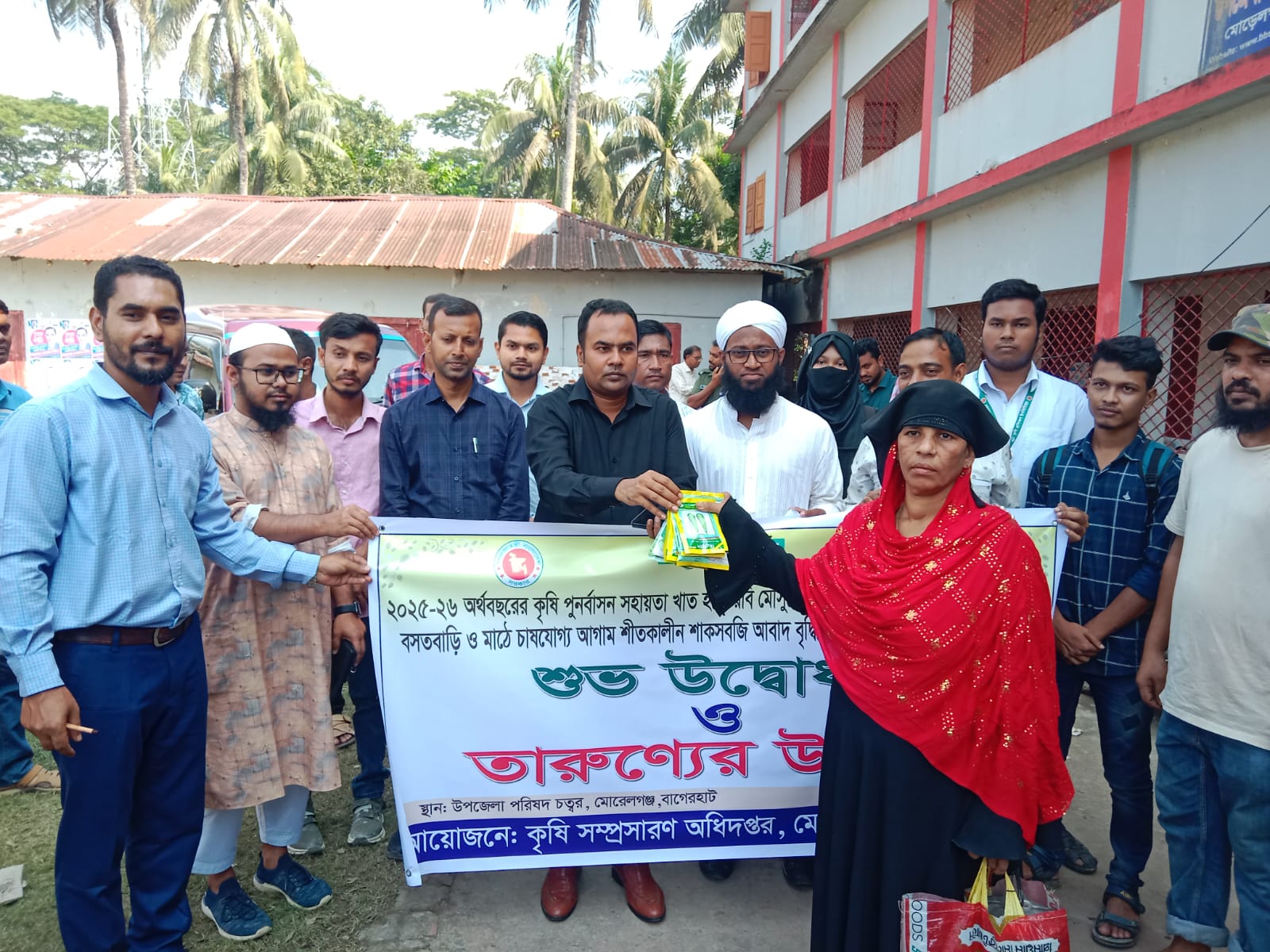 বাগেরহাটের মোরেলগঞ্জ উপজেলায় ২৫০ প্রান্তিক কৃষকের মাঝে বিনামূল্যে সবজির বীজ বিতরণ করা হয়েছে। উপজেলার ১৬টি ইউনিয়ন ও পৌরসভার কৃষকদের প্রত্যেককে ১১ প্যাকেট করে বিভিন্ন শীতকালীন সবজির বীজ দেয়া হয়েছে ।