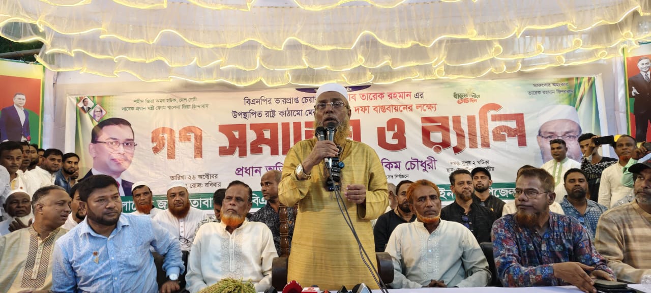 রবিবার (২৬ অক্টোবর) বিকেলে সিলেটের গোয়াইনঘাট উপজেলার শহীদ মিনার প্রাঙ্গনে বিএনপি'র (ভারপ্রাপ্ত) চেয়ারম্যান তারেক রহমান কতৃক ঘোষিত ৩১ দফা বাস্তবায়নে লিফলেট বিতরণ ও র্যালী পরবর্তী গণ সমাবেশে প্রধান অতিথির বক্তব্যে তিনি এসব কথা বলেন।