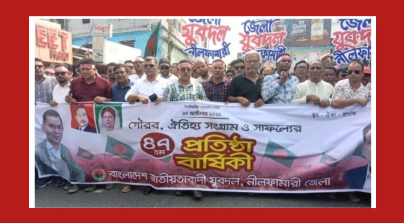বাংলাদেশ জাতীয়তাবাদী যুবদলের ৪৭তম প্রতিষ্ঠাবার্ষিকী উপলক্ষে নীলফামারীতে আলোচনা সভা ও বর্ণাঢ্য র্যালির আয়োজন করা হয়। সোমবার (২৭ অক্টোবর) সকালে শহরের জেলা বিএনপি কার্যালয় প্রাঙ্গণে এ অনুষ্ঠানের আয়োজন করা হয়।
