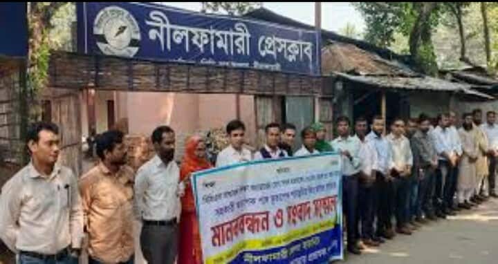 রবিবার (৯ নভেম্বর) সকাল ১১টা থেকে দুপুর ১২টা পর্যন্ত জেলা শহরের বিডিহল সংলগ্ন নীলফামারী প্রেসক্লাবের সামনে আয়োজিত এই মানববন্ধনে জেলার চারটি সরকারি কলেজের প্রভাষকরা অংশ নেন।