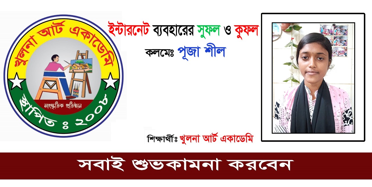 ইন্টারনেট হলো পৃথিবীজুড়ে বিস্তৃত অসংখ্য নেটওয়ার্কের সমন্বয়ে গঠিত একটি বিশাল যোগাযোগব্যবস্থা। এটি ১৯৬৯ সালে চালু হয় এবং এর জনক হলেন ভিন্টন জি. কার্ফ। প্রথমে ইন্টারনেটের গতি ছিল খুব ধীর, কিন্তু বর্তমানে এটি আমাদের হাতের মুঠোয় পৃথিবীকে এনে দিয়েছে। একে বলা যায় “নেটওয়ার্কের নেটওয়ার্ক।” বর্তমান বাস্তবতার প্রেক্ষাপটে ইন্টারনেট আমাদের দৈনন্দিন জীবনের অবিচ্ছেদ্য অংশে পরিণত হয়েছে। শিক্ষা, চিকিৎসা, ব্যবসা, বিনোদনসহ জীবনের প্রায় প্রতিটি ক্ষেত্রেই ইন্টারনেট আমাদের সহায়ক। আগে আমরা অনেক ক্ষেত্রেই পিছিয়ে ছিলাম, কিন্তু ইন্টারনেটের সঠিক ব্যবহার আমাদের জীবনকে আরও আধুনিক ও সহজ করে তুলেছে।একসময় মানুষ দূরবর্তী আত্মীয়-স্বজনের সঙ্গে যোগাযোগ রাখতে পারত না, কিন্তু এখন ইন্টারনেটের মাধ্যমে পৃথিবীর যেকোনো প্রান্তের মানুষের সঙ্গে মুহূর্তেই যোগাযোগ করা সম্ভব। বিপদের সময়ও ইন্টারনেট আমাদের পাশে থেকেছে। উদাহরণস্বরূপ, করোনা মহামারির সময় আমরা ঘরে বসে খাবার অর্ডার করা, টেলিমেডিসিনের মাধ্যমে চিকিৎসা গ্রহণ, অনলাইন ক্লাসে অংশগ্রহণ সবই করতে পেরেছি ইন্টারনেটের সাহায্যে। যখনই কোনো বিষয়ে অজানা থেকে যাই, ইন্টারনেট মুহূর্তেই তার সমাধান দেয়। অর্থাৎ, জ্ঞান আহরণকে করেছে আরও সহজ ও দ্রুত।তবে প্রত্যেকটি বিষয়ের যেমন সুফল আছে, তেমনি কুফলও রয়েছে। ইন্টারনেটেরও উভয় দিক রয়েছে। কেউ ইন্টারনেটকে জ্ঞান ও তথ্য আহরণের কাজে ব্যবহার করছে, আবার কেউ অপব্যবহার করছে। বিশেষ করে অনেক তরুণ-তরুণী নকল অ্যাকাউন্ট খুলে প্রতারণা, বিভ্রান্তি ও নানা অপরাধমূলক কর্মকাণ্ডে জড়িয়ে পড়ছে। অল্প বয়সী অনেক শিক্ষার্থী ইন্টারনেট আসক্তিতে পড়ে পড়াশোনা থেকে দূরে সরে যাচ্ছে, ফলে শিক্ষার মান কমে যাচ্ছে। অতিরিক্ত ইন্টারনেট ব্যবহারের কারণে অনেকেই বাস্তব জীবন থেকে বিচ্ছিন্ন হয়ে পড়ছে। এমনকি দৃষ্টিশক্তি দুর্বল হওয়া, মানসিক অস্থিরতা ইত্যাদিও বাড়ছে। আগে যখন ইন্টারনেট ছিল না, তখন শিশুরা স্বপ্ন দেখত শিক্ষক, চিকিৎসক, পুলিশ বা ব্যারিস্টার হওয়ার। কিন্তু এখন অনেকেই বলে “আমি বড় হয়ে টিকটক সেলিব্রিটি, ইনফ্লুয়েন্সার বা কনটেন্ট ক্রিয়েটর হতে চাই।”অতএব, ইন্টারনেটের অতিরিক্ত ব্যবহার কখনোই ভালো নয়। এটি না সম্পূর্ণ ভালো, না সম্পূর্ণ খারাপ এর ব্যবহার নির্ভর করে ব্যবহারকারীর উপর। তাই আমাদের উচিত ইন্টারনেটের সঠিক ও সীমিত ব্যবহার করা।আমি চারুকলা পড়ার উদ্দেশ্যে খুলনা আর্ট একাডেমিতে আসার পর যেটুকু জানলাম, তা তুলে ধরতে চাই। এই প্রতিষ্ঠানের সাফল্যের অন্যতম কারণ হল, চিত্রশিল্পী মিলন বিশ্বাস স্যার শুধুমাত্র বইয়ের মাধ্যমে শিক্ষা দেন না, বরং একজন আদর্শ শিক্ষার্থী হিসেবে গড়ে তোলার ক্