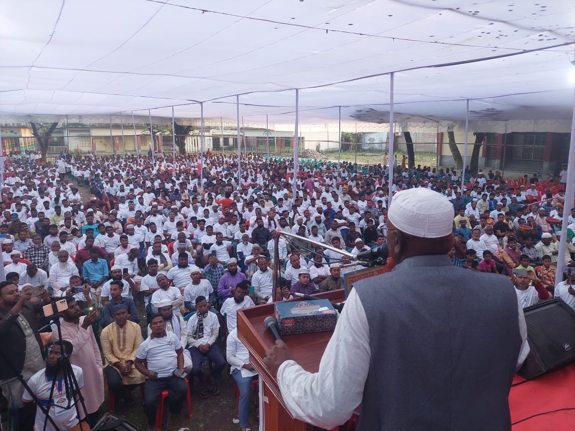 সমাবেশে অংশ নেওয়া শ্রমিকদের পরনে দাঁড়িপাল্লা প্রতীকের সাদা টি-শার্ট এবং হাতে দাবি-সংবলিত ব্যানার–প্ল্যাকার্ড পুরো মাঠজুড়ে এক ঐক্যবদ্ধ আবহ তৈরি করে।