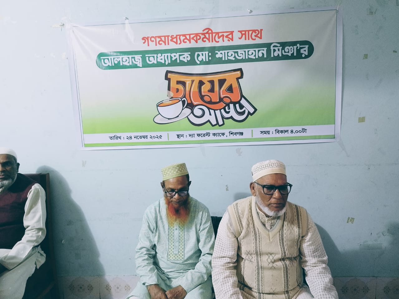 চাঁপাইনবাবগঞ্জের শিবগঞ্জে জেলার বিভিন্ন গণমাধ্যমে কর্মরত সাংবাদিকদের সঙ্গে সৌহার্দ্যপূর্ণ চায়ের আড্ডায় মিলিত হয়েছেন আলহাজ্ব অধ্যাপক মো. শাহজাহান মিঞা।