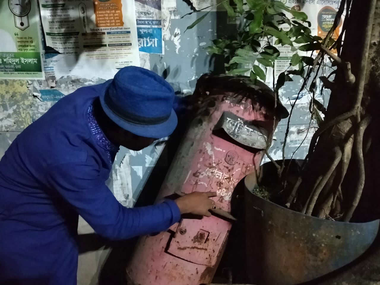 কাত–হওয়া পোস্ট বক্সের সামনে- চিত্রশিল্পী মিলন বিশ্বাস