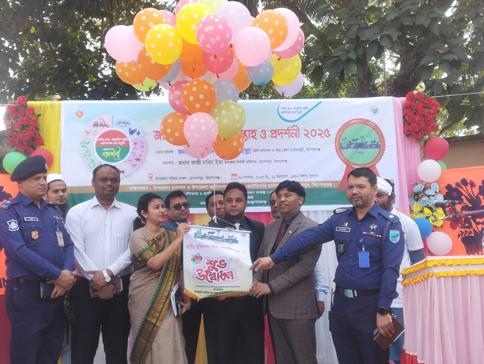কিশোরগঞ্জের হোসেনপুরে জাতীয় প্রাণিসম্পদ সপ্তাহের শুভ উদ্বোধন করেন নবাগত জেলা প্রশাসক মোহাম্মদ আসলাম মোল্লা। গতকাল বুধবার হোসেনপুর পরিষদ মাঠে হোসেনপুর উপজেলা প্রাণিসম্পদ দপ্তর ও ভেটেনারি হাসপাতালের আয়োজনে জাতীয় প্রাণিসম্পদ সপ্তাহ ও প্রদর্শনী অনুষ্ঠিত হয়। প্রদর্শনীতে ২৯ টি স্টল স্থাপন করে বিভিন্ন জাতের পশু পাখি ও ঘাসসহ বিভিন্ন প্রকার খাদ্য পশু চিকিৎসা সরঞ্জামাদি প্রদর্শণ করা হয়। পরে উপজেলা নির্বাহী কর্মকর্তা কাজী নাহিদ ইভার সভাপতিত্বে অনুষ্ঠিত আলোচনা সভায় বক্তব্য রাখেন প্রধান অতিথি জেলা প্রশাসক আসলাম মোল্লা, ওসি মারুফ হোসাইন, সহকারী কমিশনার (ভুমি) মোহসী মসনাদ, ভ্যাটেনারী সার্জন মোজাহিদুল কবির শিহাব। উপজেলা প্রাণী সম্পদ কর্মকর্তা উজ্জল হোসাইন জানান সপ্তাহ ব্যাপী কর্মসুচীতে প্রাণিসম্পদ প্রদর্শনী, ফ্রি ভ্যাক্সিনেশন, ভেটেরিনারি মেডিক্যাল ক্যাম্প, চিত্রাঙ্কন কুইজ, স্কুল ফিডিং, ভ্রাম্যমাণ প্রচারণা চলমান থাকবে। অনুষ্ঠানে উপস্থিত ছিলেন বিভিন্ন খামারী, কৃষক, গন্যমান্য ব্যক্তি ও সাংবাদিকবৃন্দ।