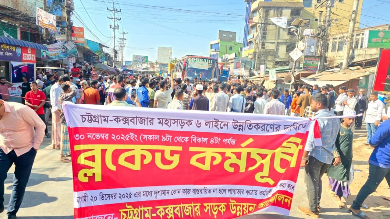 চট্টগ্রামের সাতকানিয়ায় চট্টগ্রাম কক্সবাজার মহাসড়ক ৬ লেন করার দাবিতে সড়ক অবরোধ করে বিক্ষোভ করছেন সাতকানিয়া, লোহাগাড়া ও চকরিয়ার অধিবাসীরা। রবিবার (৩০ নভেম্বর) সকাল ৯টার দিকে উপজেলার লোহাগাড়া বটতলী, কেরানিহাট এলাকায় জড়ো হয়ে মহাসড়কে অবস্থান নিলে বন্ধ হয়ে যায় যানচলাচল। হঠাৎ সড়ক অবরোধে বিপাকে পড়েন শতশত যাত্রী।