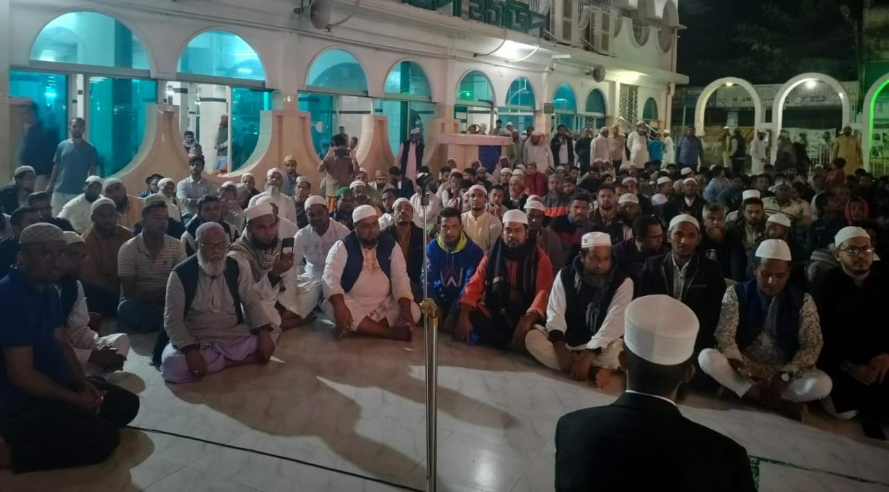 মোনাজাত পরিচালনা করেন কিশোরগঞ্জ নূরে এলাহী জামে মসজিদের খতিব হযরত মুফতি মাওলানা মো: হাসান জামীল দাঃরাঃ।