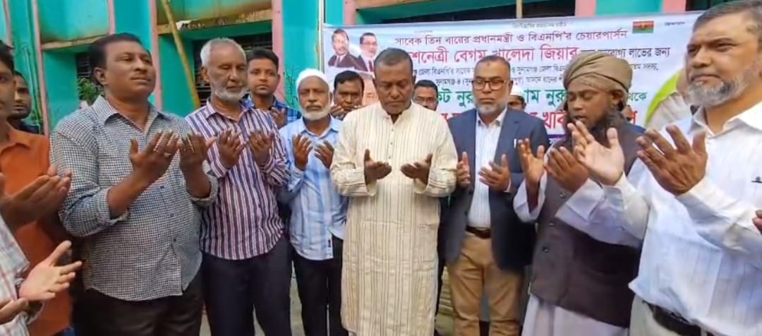 সাবেক তিন বারের প্রধানমন্ত্রী ও বিএনপি’র চেয়ারপার্সন বেগম খালেদা জিয়ার রোগমুক্তি কামনায় সুনামগঞ্জে খতমে কোরআন ও দোয়া-মিলাদ মাহফিল অনুষ্টিত হয়েছে।
