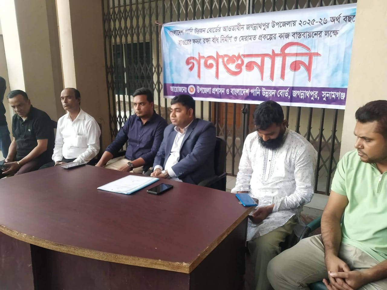 জগন্নাথপুর পৌরসভায় ফসল রক্ষা বাঁধ নির্মাণে গণশুনানী অনুষ্ঠিত