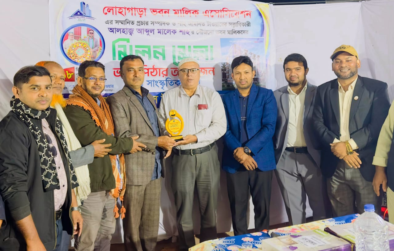 লোহাগাড়া ভবন মালিকদের সংগঠন লোহাগাড়া ভবন মালিক এসোসিয়েশন এর সম্মানিত প্রচার সম্পাদক ও শাহ আমানত টাওয়ারের সত্ত্বাধিকারী আলহাজ্ব আব্দুল মালেক শাহ সাংগঠনিক কাজে গুরুত্বপূর্ণ অবদান রাখায় সংগঠনের আহবায়ক ও হাশেম পার্কের সত্ত্বাধিকারী আলহাজ্ব আবুল হাশেম সাহেব উনাকে একটা সম্মাননা স্মারক প্রদান করেন সংগঠনের নেতৃবৃন্দ।