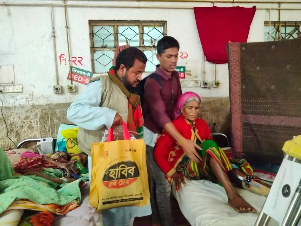 দূর্গাপুর সদর ইউনিয়নের মেনকি ঢাকা পাড়া গ্রামের এই অসহায় বৃদ্ধাকে গত ৮ নভেম্বর ২০২৫ তারিখে লেংগুড়া ফ্রি মেডিকেল ক্যাম্পে দু’জন সহৃদয় মানুষ বাঁশের তৈরি চাঙ্গারীতে করে নিয়ে আসেন চিকিৎসা করানোর জন্য। সেখানকার চিকিৎসকরা জানান, তাঁর অবস্থা গুরুতর এবং দ্রুত অর্থোপেডিক সার্জারি ছাড়া বিকল্প কোনো পথ নেই।