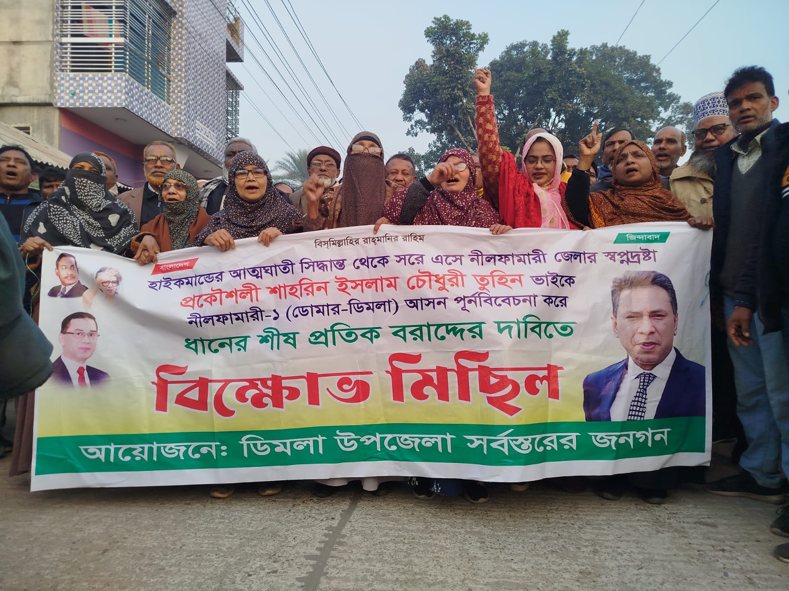 নীলফামারী-১ (ডোমার-ডিমলা) আসনে বিএনপির সম্ভাব্য প্রার্থী ইঞ্জিনিয়ার শাহরিন ইসলাম তুহিনকে দলীয় মনোনয়ন না দেওয়ায় ক্ষোভ প্রকাশ করে বিক্ষোভ কর্মসূচি পালন করেছে দলটির নেতাকর্মীরা।