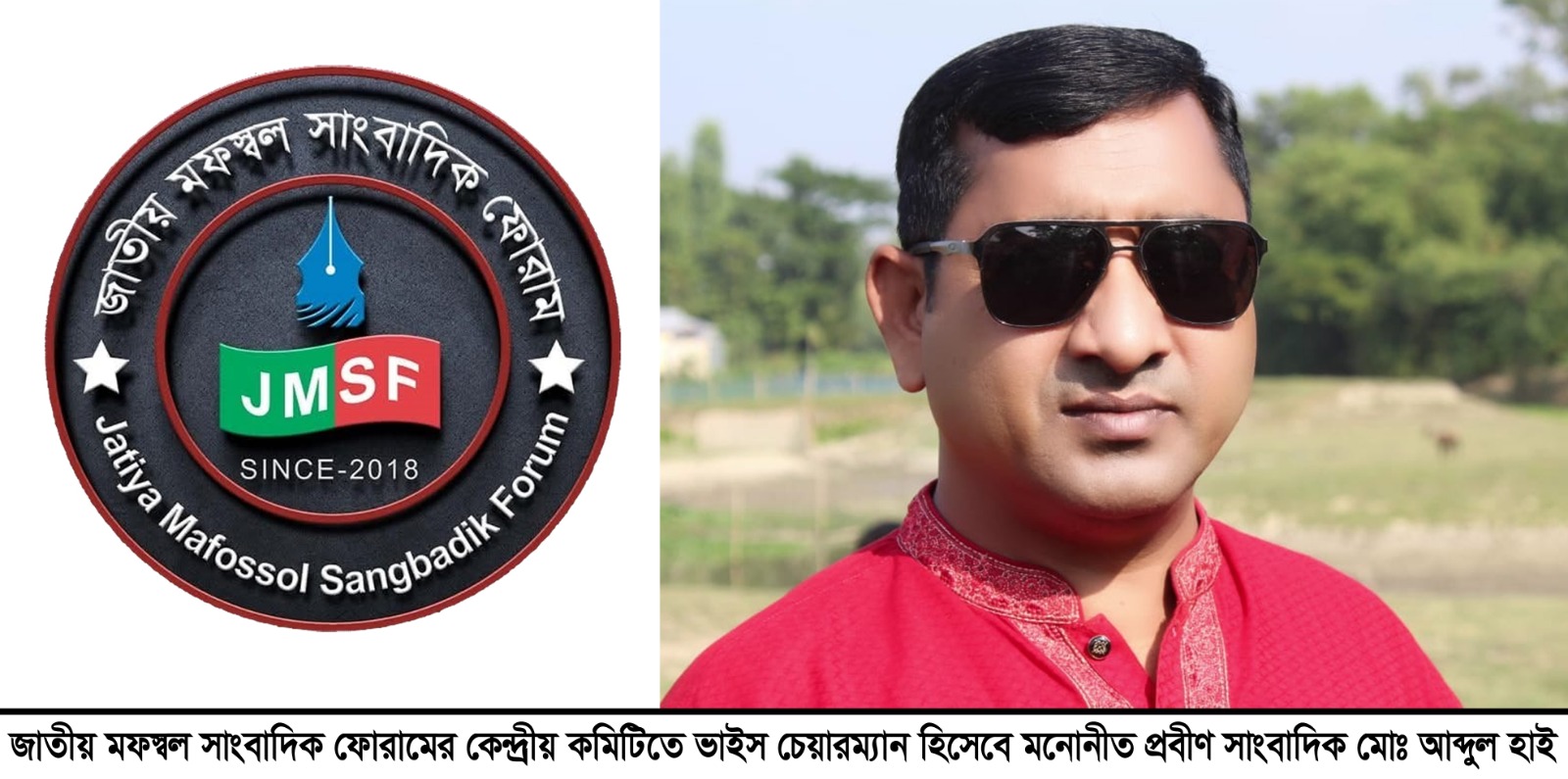 জাতীয় মফস্বল সাংবাদিক ফোরামের কেন্দ্রীয় কমিটিতে ভাইস চেয়ারম্যান হিসেবে মনোনীত হয়েছেন এনটিভি ইউরোপ-এর সুনামগঞ্জ জেলা প্রতিনিধি, প্রবীণ ও প্রথিতযশা সাংবাদিক মোঃ আব্দুল হাই। সংগঠনের কেন্দ্রীয় নেতৃবৃন্দের সর্বসম্মতিক্রমে তাকে এই গুরুত্বপূর্ণ দায়িত্ব প্রদান করা হয়েছে—যা মফস্বল সাংবাদিকতার জন্য এক তাৎপর্যপূর্ণ অগ্রগতি হিসেবে দেখা হচ্ছে।