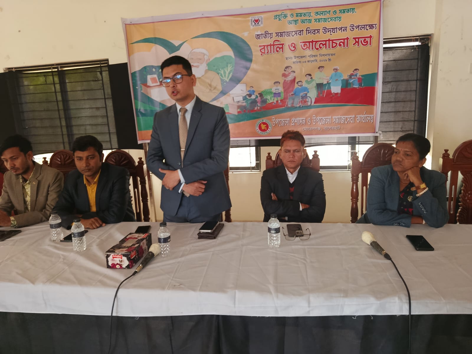 র্যালি শেষে অনুষ্ঠিত আলোচনা সভায় প্রধান অতিথি হিসেবে বক্তব্য রাখেন সহকারী কমিশনার (ভূমি) অতীশ সরকার। তিনি বলেন, “সমাজসেবা কেবল সহানুভূতির বিষয় নয়, এটি প্রযুক্তিনির্ভর ও টেকসই উন্নয়নের একটি কার্যকর হাতিয়ার। প্রান্তিক জনগোষ্ঠীর ক্ষমতায়ন ও সামাজিক বৈষম্য দূর করতে সমাজসেবার ভূমিকা অপরিসীম।”