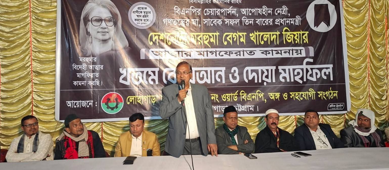 লোহাগাড়ায় সদর ইউনিয়নে বেগম খালেদা জিয়া’র স্মরণে দোয়া মাহফিল অনুষ্ঠিত