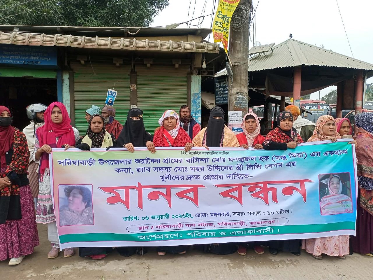 সরিষাবাড়ীতে লিপি হত্যার বিচারের দাবিতে মানববন্ধন ও থানায় অবস্থান কর্মসূচি