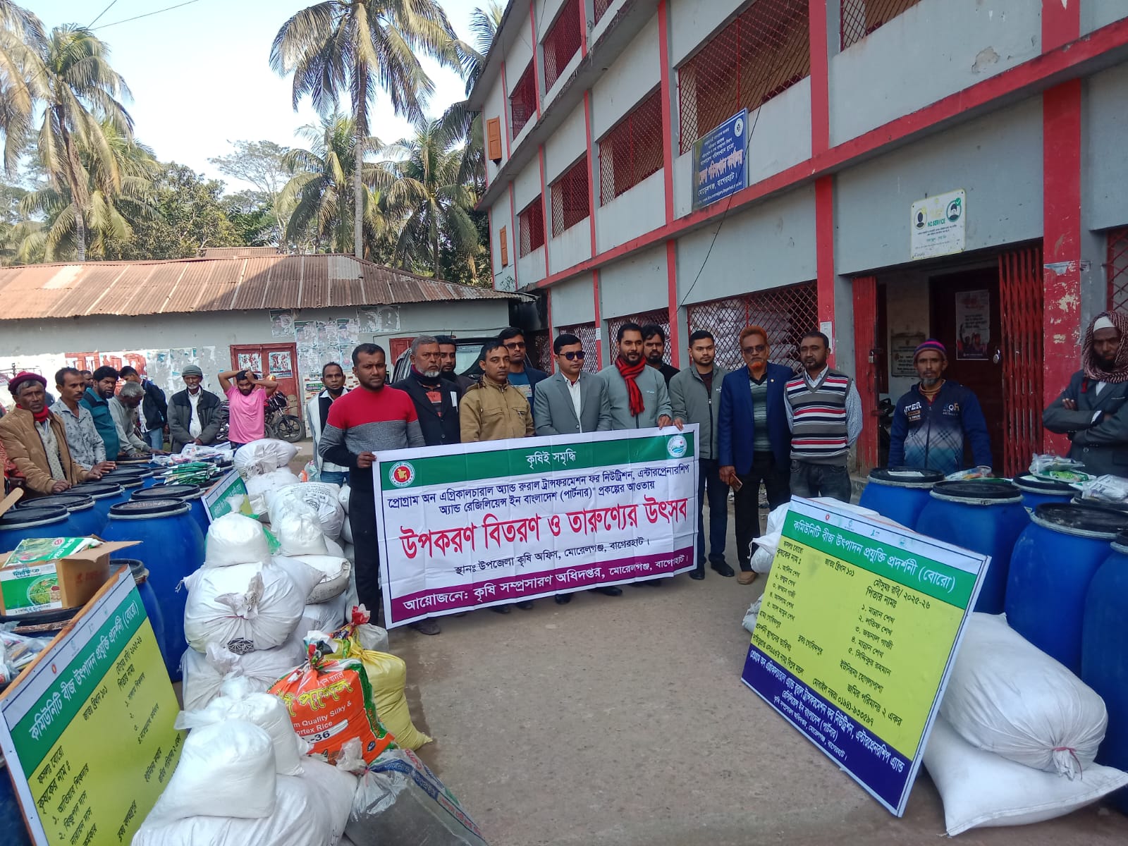প্রোগ্রাম অন এগ্রিকালচারাল অ্যান্ড রুরাল ট্রান্সফরমেশন ফর নিউট্রিশন, এন্টারপ্রেনারশীপ অ্যান্ড রেসিলিয়েন্স ইন বাংলাদেশ (PARTNER) প্রকল্পের আওতায় বৃহস্পতিবার দুপুরে মোরেলগঞ্জ অফিসার্স ক্লাব চত্বরে আয়োজিত এই বিতরণ অনুষ্ঠানে সকাল থেকেই উপজেলার বিভিন্ন ইউনিয়নের কৃষকদের স্বতঃস্ফূর্ত উপস্থিতিতে উৎসবমুখর পরিবেশের সৃষ্টি হয়।