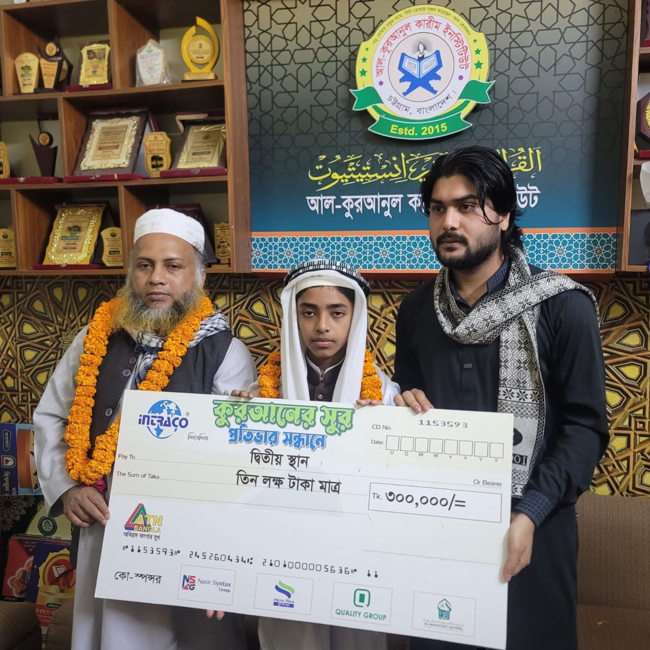 সাফল্যের মুকুটে আরও একটি নতুন মাত্রা যোগ করল মেধাবী ছাত্র হাফেজ হুজাইফা। আল-কুরআনুল কারীম ইনস্টিটিউট, বশর টাওয়ার, শাহপীর রোড, লোহাগাড়া শাখার-এর অত্যন্ত মেধাবী ছাত্র হাফেজ হুজাইফা বিন শিব্বির এটিএন বাংলা আয়োজিত দেশব্যাপী জাতীয় হিফজুল কুরআন প্রতিযোগিতা "কুরআনের সুর প্রতিভার সন্ধানে-২০২৬"-এ সারা দেশের মধ্যে ২য় স্থান অর্জন করেছে।