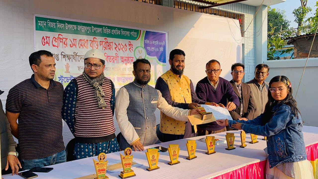 মহান বিজয় উপলক্ষে স্টুডেন্টস কেয়ার জগন্নাথপুর ও যুব ফোরাম কর্তৃক আয়োজিত ১ম মেধা বৃত্তি পরীক্ষার পুরুষ্কার বিতরনী অনুষ্ঠান সম্পন্ন