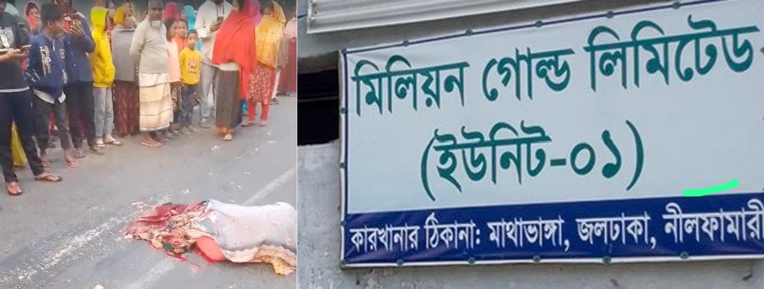 নিহত শ্রমিকের নাম সুমিত্রা রানী ওরফে পাতা রানী (২৬)। তিনি জলঢাকা উপজেলার পশ্চিম কাঠালী ভোগমারী এলাকার বাসিন্দা এবং জলঢাকা মিলিয়ন গোল্ড কোম্পানির ইউনিট–১ এ কর্মরত ছিলেন।