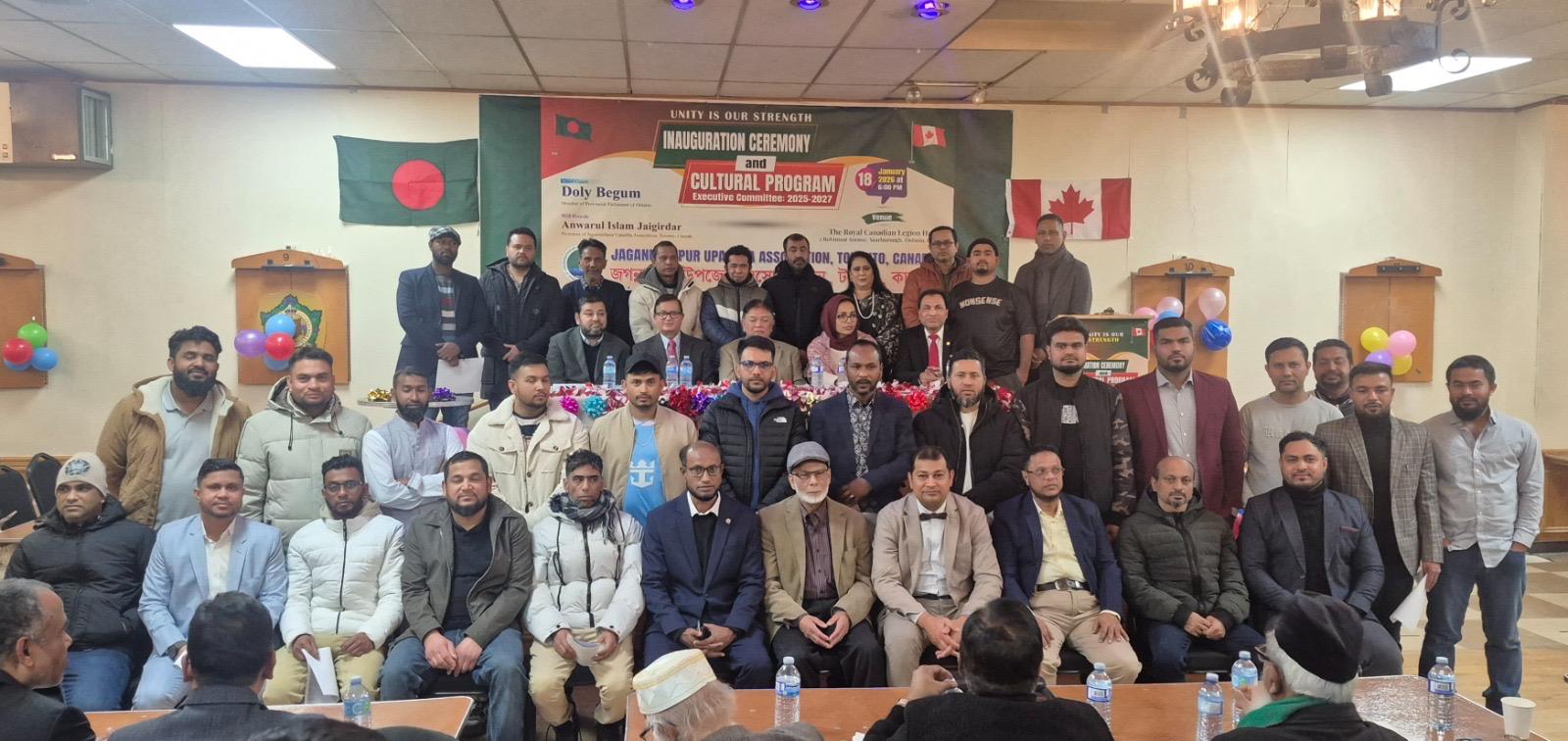 ১৮ জানুয়াৱী রবিবার রাতে কানাডা টরন্টো দি রয়েল কানাডিয়ান লিজিওন হলে বাংলাদেশ ও কানাডার জাতীয় সংগীত এর মাধ্যমে অনুষ্ঠানের শুরু হয়। জগন্নাথপুর উপজেলা এসোসিয়েশনের সভাপতি আনোয়ারুল ইসলাম জায়গীরদার এর সভাপতিত্বে ও সাধারণ সম্পাদক আমান উদ্দিন আহমদ এর পরিচালনায় অভিষেক অনুষ্ঠানে প্রধান অতিথির বক্তব্য রাখেন অন্টারিও প্রাদেশিক সংসদের সদস্য বাংলাদেশী বংশোদ্ভূত (এমপিপি) ডলি বেগম। অভিষেক উদযাপন কমিটির আহবায়ক মোঃ শামীম মিয়ার স্বাগত বক্তব্যের মাধ্যমে শুরু হওয়া অনুষ্ঠানে বিশেষ অতিথি হিসাবে উপস্থিত ছিলেন প্রফেসর মোঃ আতাউর রহমান, বীর মুক্তিযোদ্ধা প্রফেসর মোঃ মাসুক মিয়া, ইউনাইটেড জালালাবাদ ফাউন্ডেশন এর ফাউন্ডার কনভেনার মোঃ আখলাক হোসেন, টরন্টো ভোরের আলো পত্রিকার সম্পাদক আহাদ খন্দকার, বাংলাদেশী কানাডিয়ান ফাউন্ডেশন সভাপতি মঈন উদ্দিন চৌধুরী, ইমিগ্রেশন কনসালটেনট প্রফেসর তানভীর আহমদ চৌধুরী, ব্যারিস্টার আরিফ হোসাইন, ওসমানী স্পোর্টস ক্লাবের সভাপতি জাকারিয়া চৌধুরী, জালালাবাদ ফাউন্ডেশন জিটিএ ইন্ক এর সাধারণ সম্পাদক মইনুর রহমান আজিজ, কলামিস্ট গিয়াস উদ্দিন। অভিষেক অনুষ্ঠানে অভিষিক্তদের শপথ বাক্য পাঠ করান প্রফেসর আতাউর রহমান।