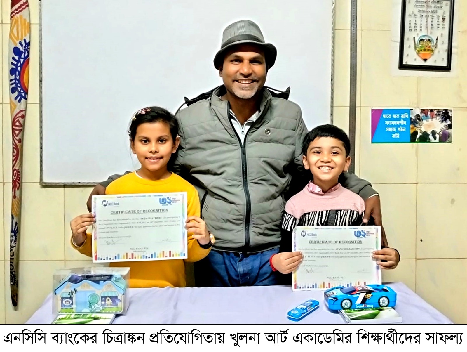 খুলনা আর্ট একাডেমির ৪জন শিক্ষার্থী এনসিসি ব্যাংক থেকে পুরস্কার গ্রহণ করে