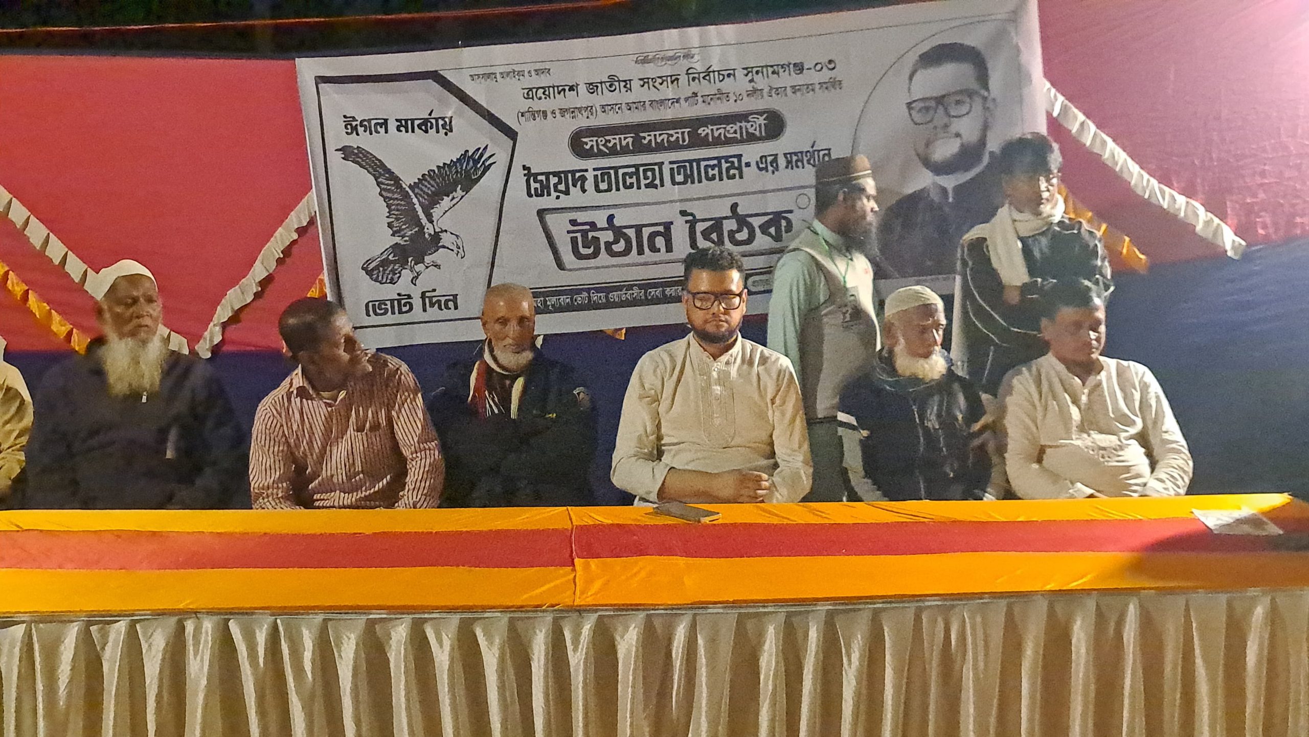 ত্রয়োদশ জাতীয় সংসদ নির্বাচনকে সামনে রেখে সুনামগঞ্জ-০৩ (শান্তিগঞ্জ ও জগন্নাথপুর) আসনে প্রচার-প্রচারণা তুঙ্গে উঠেছে। এরই ধারাবাহিকতায় 'আমার বাংলাদেশ পার্টি' মনোনীত ও ১০ দলীয় ঐক্যের সমর্থিত সংসদ সদস্য পদপ্রার্থী সৈয়দ তালহা আলমের (ঈগল মার্কা) সমর্থনে এক বিশাল উঠান বৈঠক অনুষ্ঠিত হয়েছে।