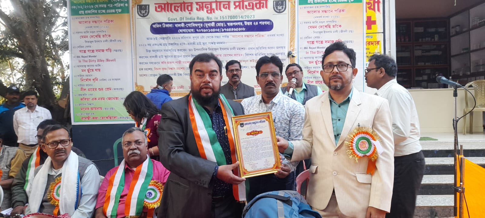 ‘আলোর সন্ধানে’ পত্রিকার নববর্ষ সংখ্যায় সেরা প্রাবন্ধিক হিসেবে মহম্মদ মফিজুল ইসলাম, কবিতায় সেরা হিসেবে সর্ণালী মন্ডল এবং গল্পে সেরা হিসেবে আখের আলী মহাশয়কে স্মারক সম্মাননা প্রদান করা হয়।
