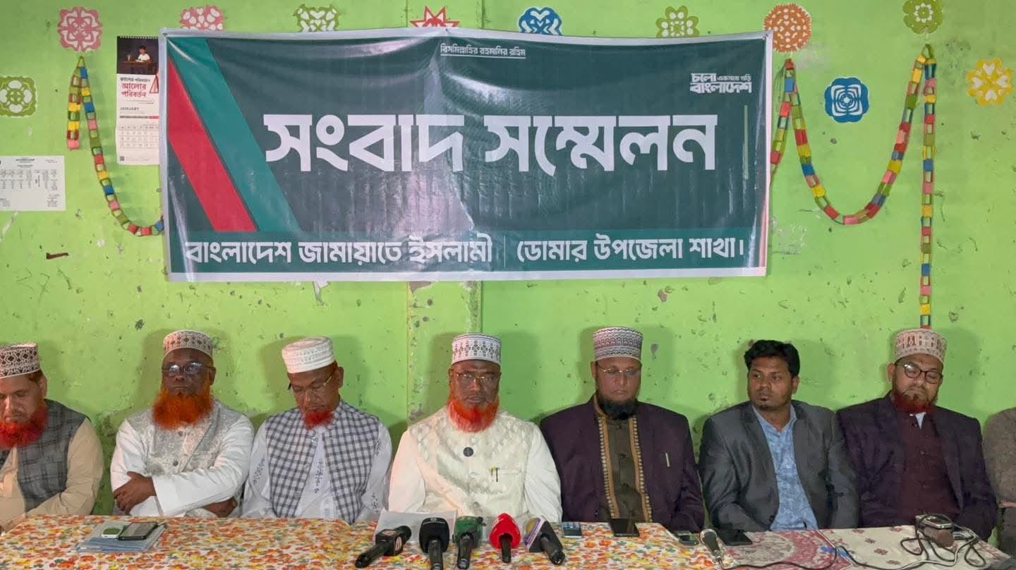 চিলাহাটিতে জামায়াত কার্যালয়ে হামলার প্রতিবাদে এমপি মাওলানা অধ্যক্ষ আব্দুস সাত্তারের সংবাদ সম্মেলন